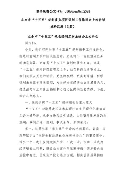 【七哥公文】2025年:(3篇)在全市“十五五”规划重点项目谋划工作推进会上的讲话材料汇编+更多免费公文+VX:QiGeGongWen2024+更多免费公文+VX:QiGeGongWen2024