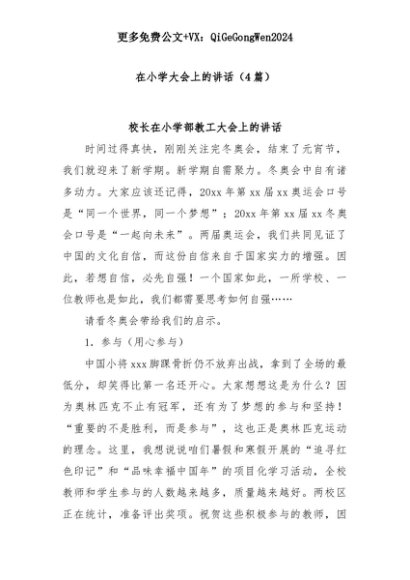 【七哥公文】2025年:(4篇)在小学大会上的讲话+更多免费公文+VX:QiGeGongWen2024+更多免费公文+VX:QiGeGongWen2024