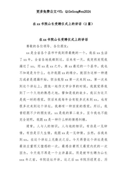 【七哥公文】2025年:(2篇)在xx书院山长受聘仪式上的讲话+更多免费公文+VX:QiGeGongWen2024+更多免费公文+VX:QiGeGongWen2024