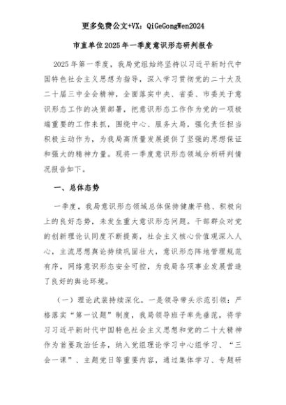 【七哥公文】2025年:市直单位2025年一季度意识形态研判报告+更多免费公文+VX:QiGeGongWen2024+更多免费公文+VX:QiGeGongWen2024