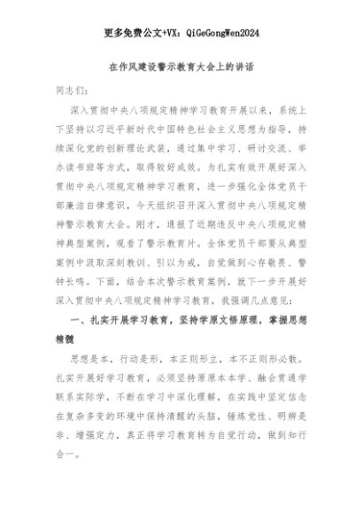 【七哥公文】2025年:在作风建设警示教育大会上的讲话+更多免费公文+VX:QiGeGongWen2024+更多免费公文+VX:QiGeGongWen2024