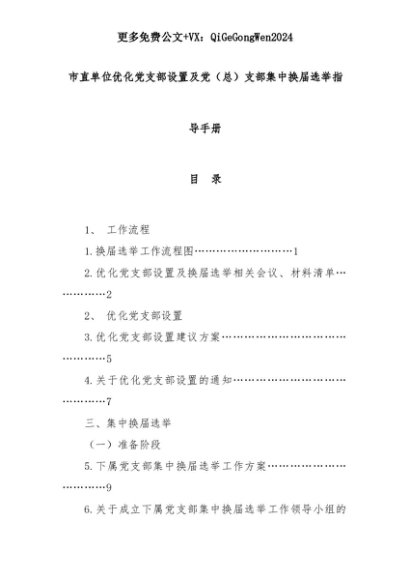 【七哥公文】2025年:市直单位优化党支部设置及党(总)支部集中换届选举指导手册+更多免费公文+VX:QiGeGongWen2024+更多免费公文+VX:QiGeGongWen2024