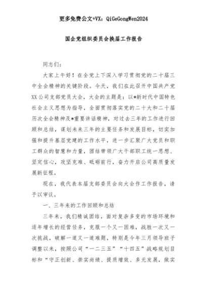【七哥公文】2025年:国企党组织委员会换届工作报告+更多免费公文+VX:QiGeGongWen2024+更多免费公文+VX:QiGeGongWen2024