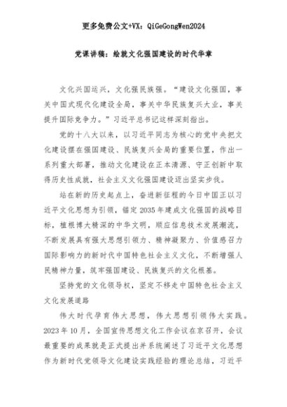 【七哥公文】2025年:党课讲稿:绘就文化强国建设的时代华章+更多免费公文+VX:QiGeGongWen2024+更多免费公文+VX:QiGeGongWen2024