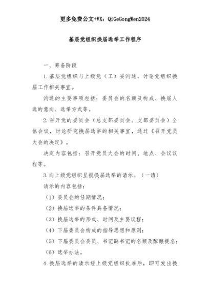 【七哥公文】2025年:基层党组织换届选举工作程序+更多免费公文+VX:QiGeGongWen2024+更多免费公文+VX:QiGeGongWen2024