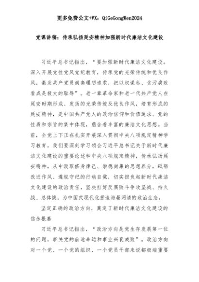 【七哥公文】2025年:党课讲稿:传承弘扬延安精神加强新时代廉洁文化建设+更多免费公文+VX:QiGeGongWen2024+更多免费公文+VX:QiGeGongWen2024