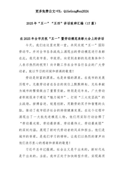 【七哥公文】2025年:(17篇)2025年“五一”“五四”讲话致辞汇编+更多免费公文+VX:QiGeGongWen2024+更多免费公文+VX:QiGeGongWen2024