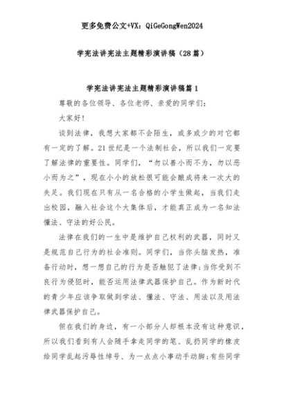 【七哥公文】2025年:(28篇)学宪法讲宪法主题精彩演讲稿+更多免费公文+VX:QiGeGongWen2024+更多免费公文+VX:QiGeGongWen2024