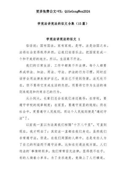 【七哥公文】2025年:(15篇)学宪法讲宪法的征文合集+更多免费公文+VX:QiGeGongWen2024+更多免费公文+VX:QiGeGongWen2024