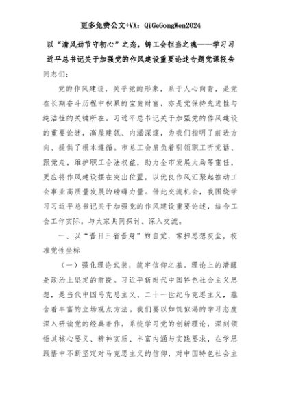 【七哥公文】2025年:以“清风劲节守初心”之态,铸工会担当之魂——学习习近平总书记关于加强党的作风建设重要论述专题党课报告+更多免费公文+VX:QiGeGongWen2024+更多免费公文+VX:QiGeGongWen2024