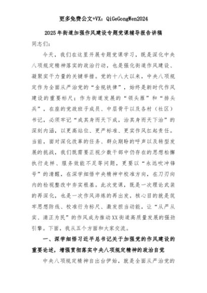 【七哥公文】2025年:2025年街道加强作风建设专题党课辅导报告讲稿+更多免费公文+VX:QiGeGongWen2024+更多免费公文+VX:QiGeGongWen2024