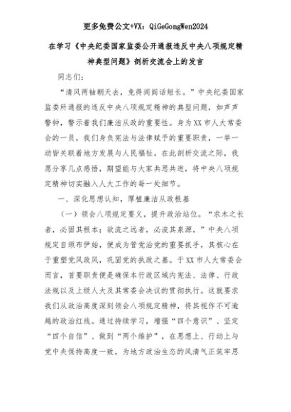 【七哥公文】2025年:在学习《中央纪委国家监委公开通报违反中央八项规定精神典型问题》剖析交流会上的发言+更多免费公文+VX:QiGeGongWen2024+更多免费公文+VX:QiGeGongWen2024