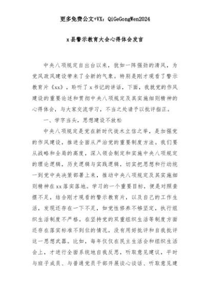 【七哥公文】2025年:x县警示教育大会心得体会发言+更多免费公文+VX:QiGeGongWen2024+更多免费公文+VX:QiGeGongWen2024