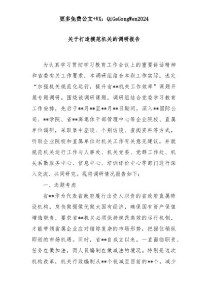 【七哥公文】2025年:关于打造模范机关的调研报告+更多免费公文+VX:QiGeGongWen2024+更多免费公文+VX:QiGeGongWen2024