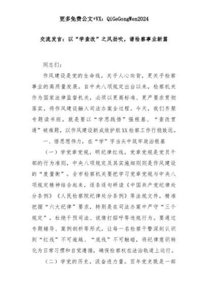 【七哥公文】2025年:交流发言:以“学查改”之风劲吹,谱检察事业新篇+更多免费公文+VX:QiGeGongWen2024+更多免费公文+VX:QiGeGongWen2024