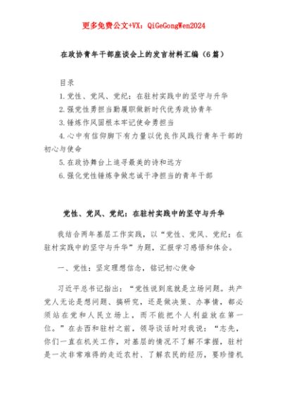 【七哥公文】2025年:(6篇)在政协青年干部座谈会上的发言材料汇编+更多免费公文+VX:QiGeGongWen2024+更多免费公文+VX:QiGeGongWen2024