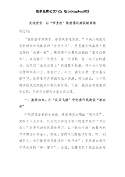 【七哥公文】2025年:交流发言:以“学查改”绘就作风建设新画卷+更多免费公文+VX:QiGeGongWen2024+更多免费公文+VX:QiGeGongWen2024