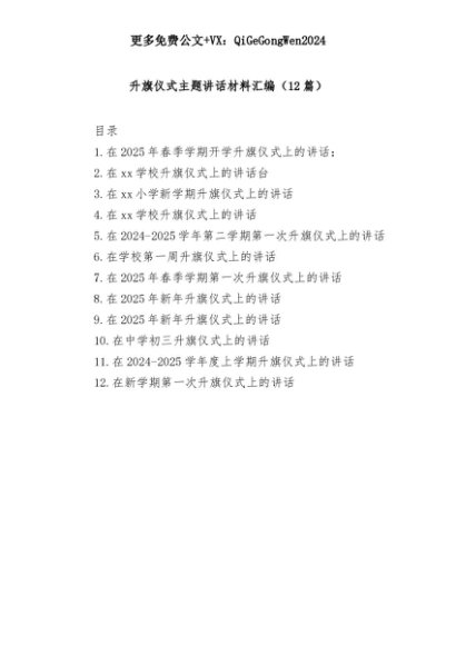 【七哥公文】2025年:(12篇)升旗仪式主题讲话材料汇编+更多免费公文+VX:QiGeGongWen2024+更多免费公文+VX:QiGeGongWen2024