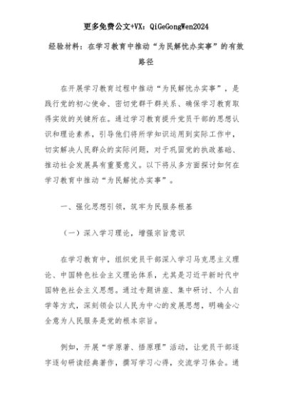 【七哥公文】2025年:【七哥公文】经验材料:在学习教育中推动“为民解忧办实事”的有效路径+更多免费公文+VX:QiGeGongWen2024+更多免费公文+VX:QiGeGongWen2024