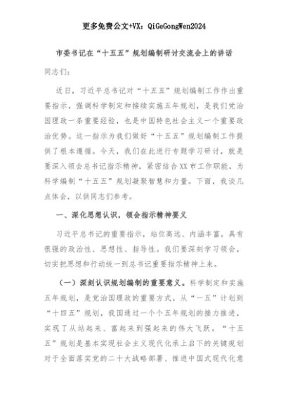 【七哥公文】2025年:【七哥公文】市委书记在“十五五”规划编制研讨交流会上的讲话+更多免费公文+VX:QiGeGongWen2024+更多免费公文+VX:QiGeGongWen2024