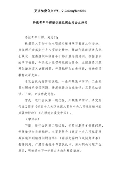 【七哥公文】2025年:【七哥公文】科级青年干部培训班组织生活会主持词+更多免费公文+VX:QiGeGongWen2024+更多免费公文+VX:QiGeGongWen2024