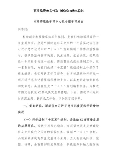 【七哥公文】2025年:【七哥公文】市政府理论学习中心组专题学习发言+更多免费公文+VX:QiGeGongWen2024+更多免费公文+VX:QiGeGongWen2024
