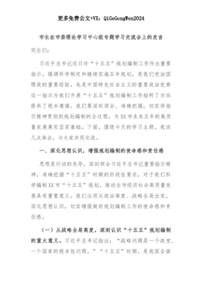 【七哥公文】2025年:【七哥公文】市长在市委理论学习中心组专题学习交流会上的发言+更多免费公文+VX:QiGeGongWen2024+更多免费公文+VX:QiGeGongWen2024