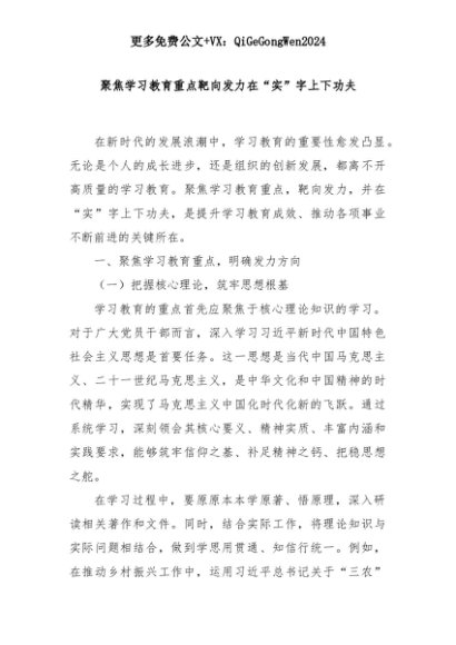 【七哥公文】2025年:【七哥公文】聚焦学习教育重点靶向发力在“实”字上下功夫+更多免费公文+VX:QiGeGongWen2024+更多免费公文+VX:QiGeGongWen2024