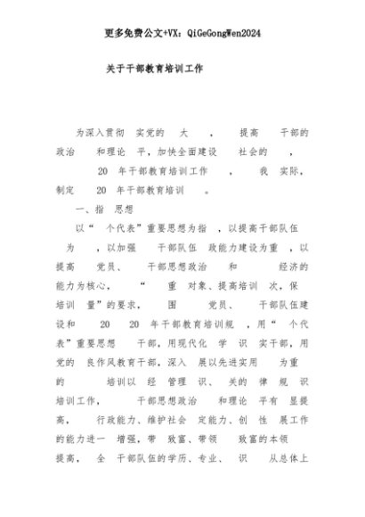 【七哥公文】2025年:【七哥公文】(6篇)关于干部教育培训工作计划+更多免费公文+VX:QiGeGongWen2024+更多免费公文+VX:QiGeGongWen2024