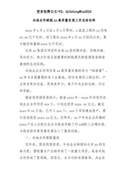 【七哥公文】2025年:央地合作赋能xx高质量发展工作总结材料+更多免费公文+VX:QiGeGongWen2024+更多免费公文+VX:QiGeGongWen2024