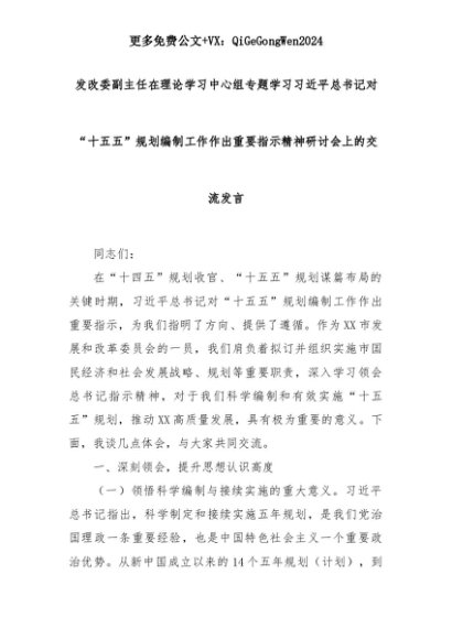 【七哥公文】2025年:【七哥公文】发改委副主任在理论学习中心组专题学习习近平总书记对“十五五”规划编制工作作出重要指示精神研讨会上的交流发言+更多免费公文+VX:QiGeGongWen2024+更多免费公文+VX:QiGeGongWen2024