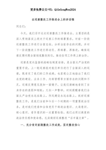 【七哥公文】2025年:【七哥公文】在巡察整改工作推进会上的讲话稿+更多免费公文+VX:QiGeGongWen2024+更多免费公文+VX:QiGeGongWen2024
