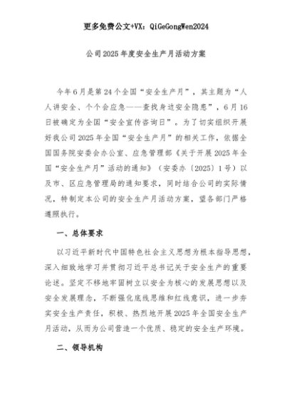 【七哥公文】2025年:【七哥公文】公司2025年度安全生产月活动方案+更多免费公文+VX:QiGeGongWen2024+更多免费公文+VX:QiGeGongWen2024