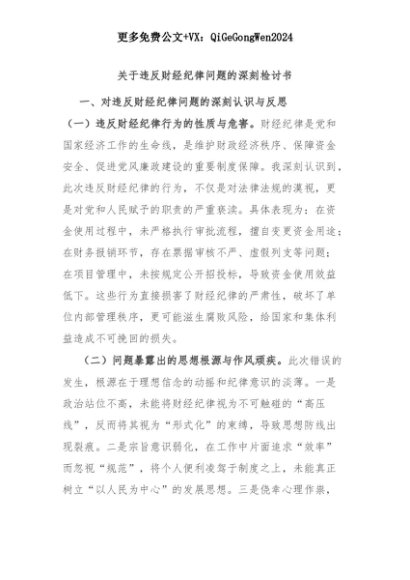 【七哥公文】2025年:【七哥公文】关于违反财经纪律问题的深刻检讨书+更多免费公文+VX:QiGeGongWen2024+更多免费公文+VX:QiGeGongWen2024