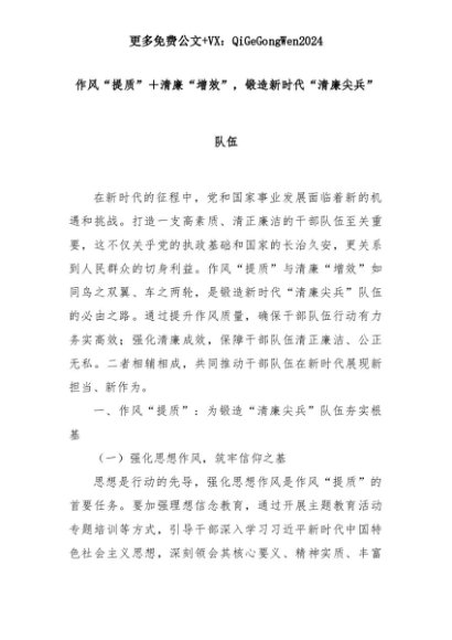 【七哥公文】2025年:【七哥公文】作风“提质”+清廉“增效”,锻造新时代“清廉尖兵”队伍+更多免费公文+VX:QiGeGongWen2024+更多免费公文+VX:QiGeGongWen2024