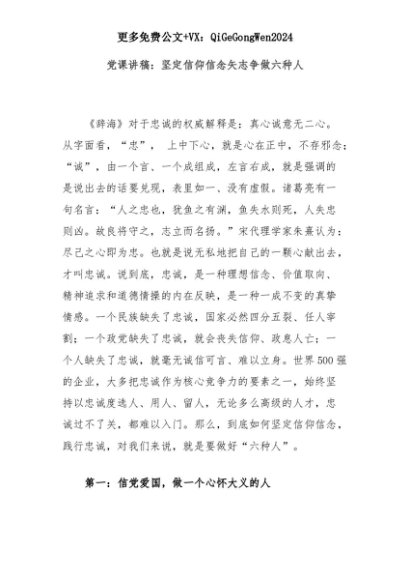 【七哥公文】2025年:【七哥公文】党课讲稿:坚定信仰信念矢志争做六种人+更多免费公文+VX:QiGeGongWen2024+更多免费公文+VX:QiGeGongWen2024
