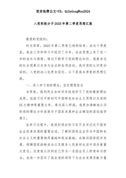 【七哥公文】2025年:【七哥公文】入党积极分子2025年第二季度思想汇报+更多免费公文+VX:QiGeGongWen2024+更多免费公文+VX:QiGeGongWen2024