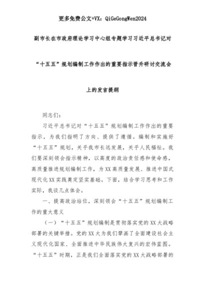 【七哥公文】2025年:【七哥公文】副市长在市政府理论学习中心组专题学习习近平总书记对“十五五”规划编制工作作出的重要指示晋升研讨交流会上的发言提纲+更多免费公文+VX:QiGeGongWen2024+更多免费公文+VX:QiGeGongWen2024