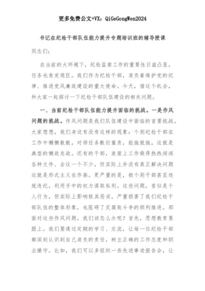【七哥公文】2025年:【七哥公文】书记在纪检干部队伍能力提升专题培训班的辅导授课+更多免费公文+VX:QiGeGongWen2024+更多免费公文+VX:QiGeGongWen2024
