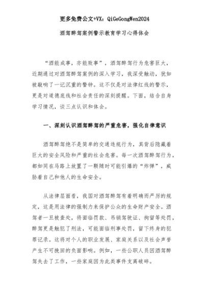 【七哥公文】2025年:酒驾醉驾案例警示教育学习心得体会+更多免费公文+VX:QiGeGongWen2024+更多免费公文+VX:QiGeGongWen2024