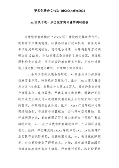 【七哥公文】2025年:【七哥公文】xx区关于进一步优化营商环境的调研报告+更多免费公文+VX:QiGeGongWen2024+更多免费公文+VX:QiGeGongWen2024