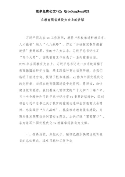 【七哥公文】2025年:在教育强省建设大会上的讲话+更多免费公文+VX:QiGeGongWen2024+更多免费公文+VX:QiGeGongWen2024