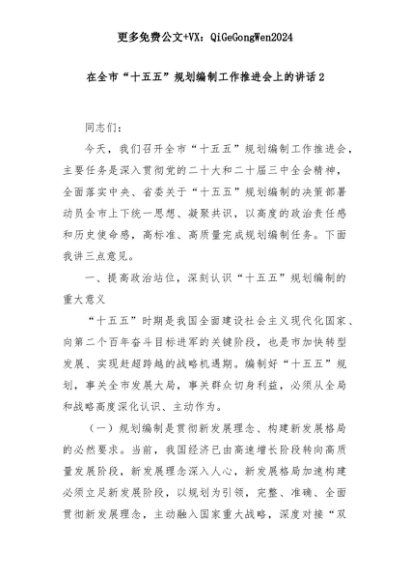 【七哥公文】2025年:在全市“十五五”规划编制工作推进会上的讲话2+更多免费公文+VX:QiGeGongWen2024+更多免费公文+VX:QiGeGongWen2024