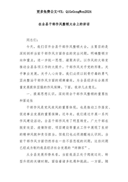 【七哥公文】2025年:在全县干部作风整顿大会上的讲话+更多免费公文+VX:QiGeGongWen2024+更多免费公文+VX:QiGeGongWen2024