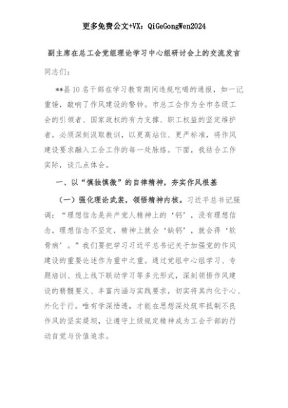 【七哥公文】2025年:副主席在总工会党组理论学习中心组研讨会上的交流发言+更多免费公文+VX:QiGeGongWen2024+更多免费公文+VX:QiGeGongWen2024