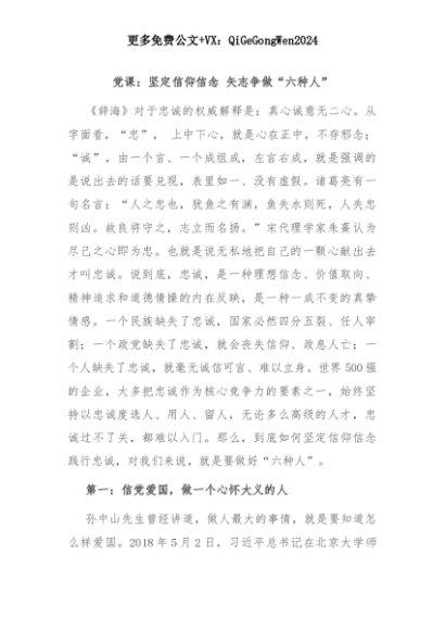 【七哥公文】2025年:党课:坚定信仰信念 矢志争做“六种人”+更多免费公文+VX:QiGeGongWen2024+更多免费公文+VX:QiGeGongWen2024