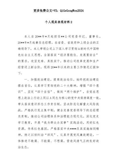 【七哥公文】2025年:个人现实表现材料2+更多免费公文+VX:QiGeGongWen2024+更多免费公文+VX:QiGeGongWen2024