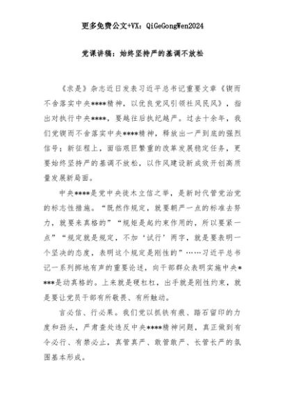 【七哥公文】2025年:党课讲稿:始终坚持严的基调不放松+更多免费公文+VX:QiGeGongWen2024+更多免费公文+VX:QiGeGongWen2024