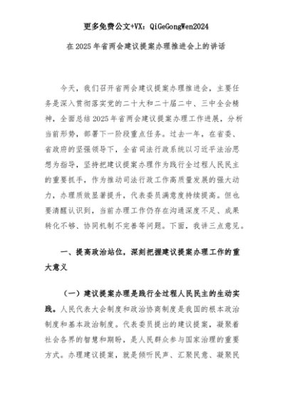 【七哥公文】2025年:在2025年省两会建议提案办理推进会上的讲话+更多免费公文+VX:QiGeGongWen2024+更多免费公文+VX:QiGeGongWen2024