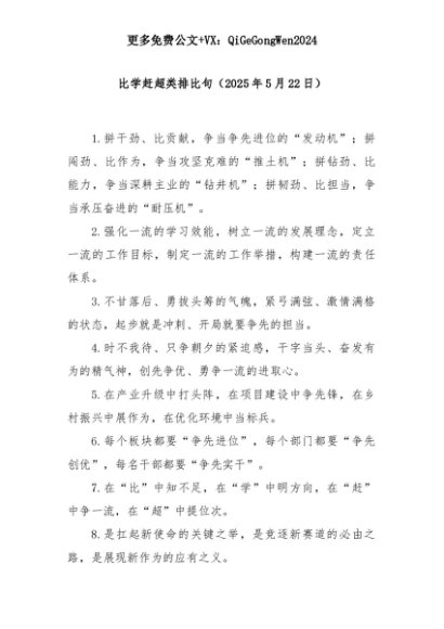 【七哥公文】2025年:比学赶超类排比句(2025年5月22日)+更多免费公文+VX:QiGeGongWen2024+更多免费公文+VX:QiGeGongWen2024